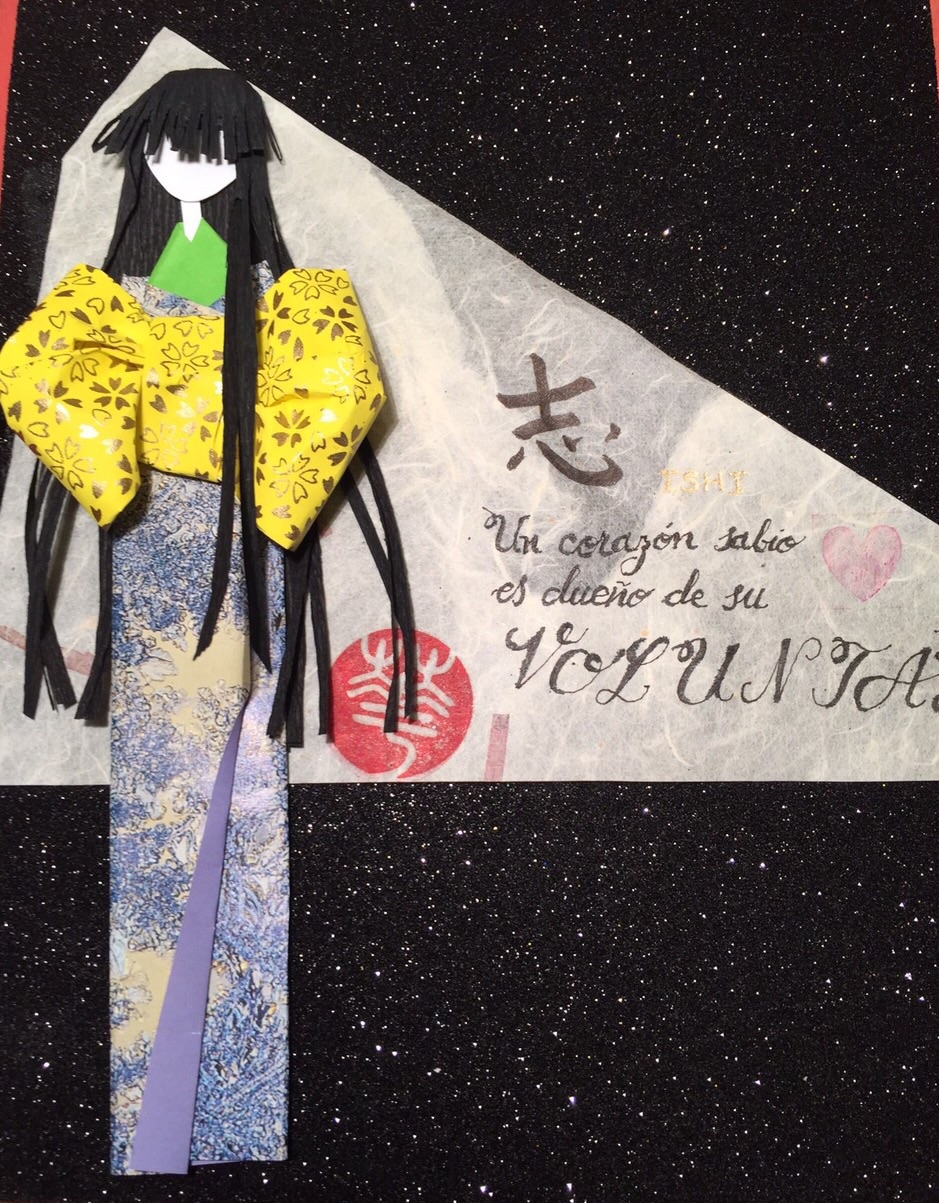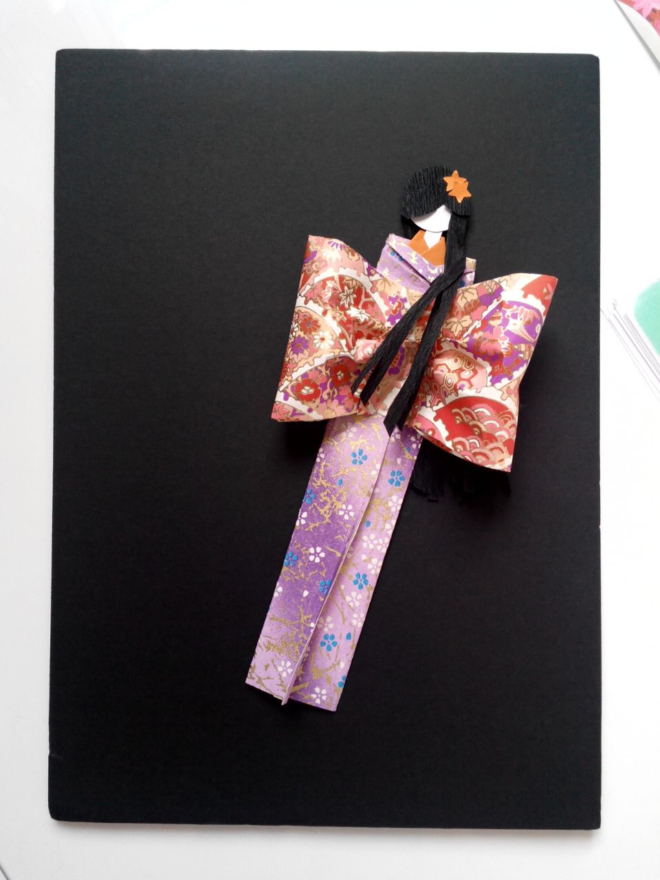 Estuvimos trabajando sobre patrones para realizar esa terminación para nuestro obi … Y conoel día iba de lazos, nadar mejor que utilizar las técnicas de doblado en húmedo para crear peqeuños lacitos que parecieran casi telas. Son ideales para el pelo y pequeñas decoraciones como la de mi arquera.