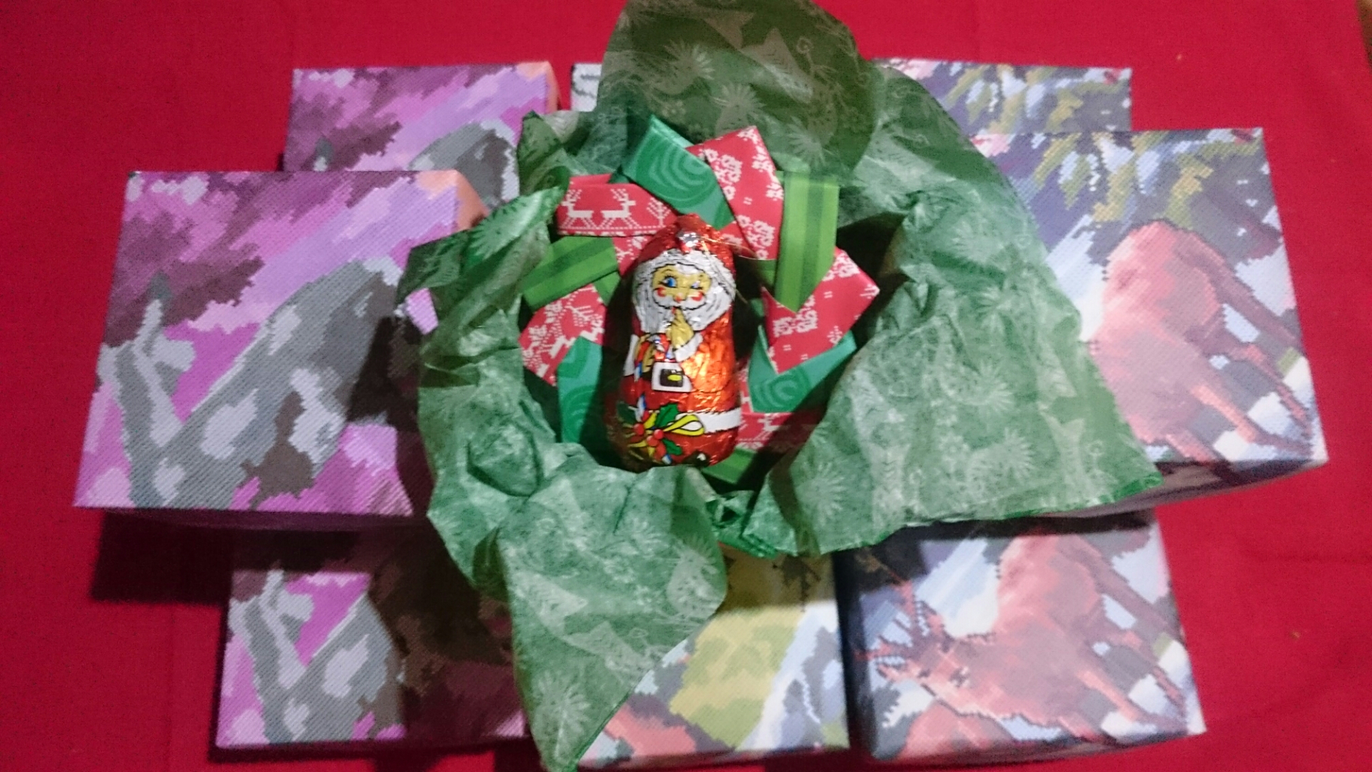 Las puedes hacer con folios, con papel del Tiger, papel de regalo…. casi cualquier cosa que encuentres mientras sea un papel un poco tieso que doble bien. Añadirle lazos de tela. muñocolates , papel aromatizado para que huela bien al abrir las cajitas…. O adornar con grullas, seguro que adivináis para quien es esa caja.