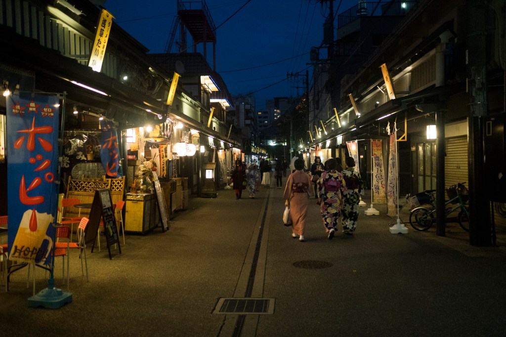 Encajonado entre edificios, con las torres del templo Sensoji de fondo, tiene el encanto de las cosas verdaderas y no pretenciosas. Esa mezcla de atracciones realmente antiguas y decoraciones naive desgastadas.