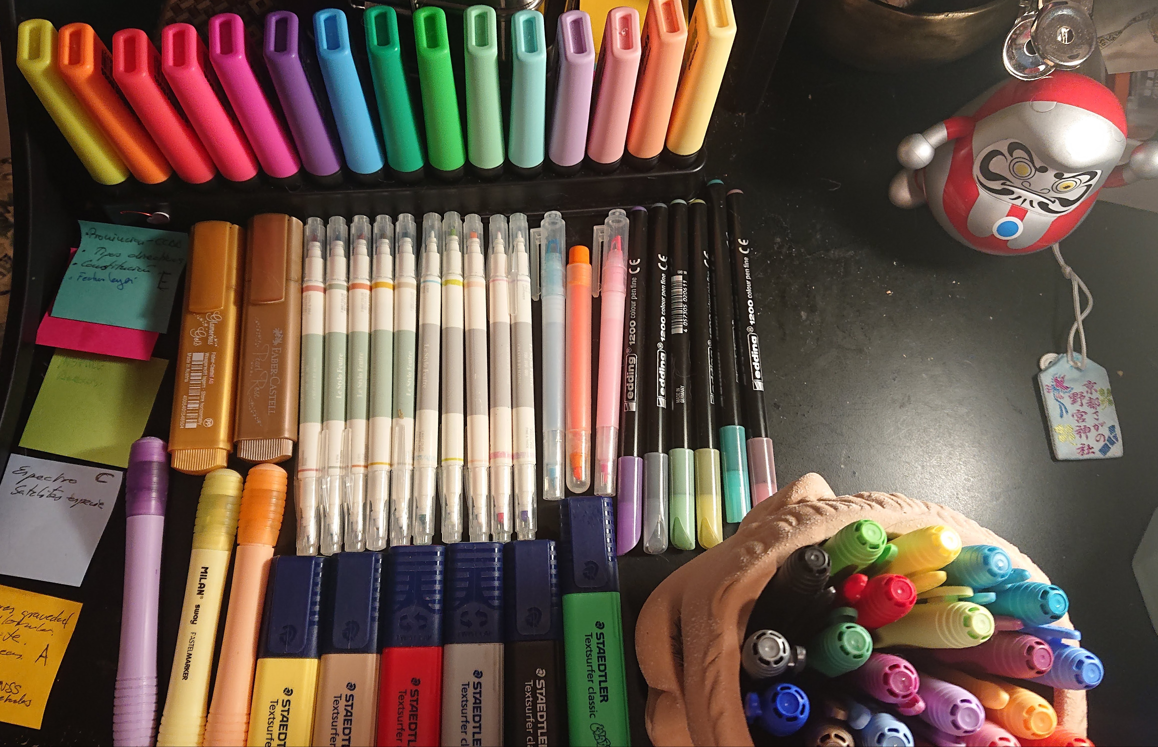 No será que ando sin fluorescentes con los que subrayar ( hasta los tengo coreanos). Creo que esto de acumularlos es algún tipo de síndrome extraño que nos da a los que preparamos una oposición.