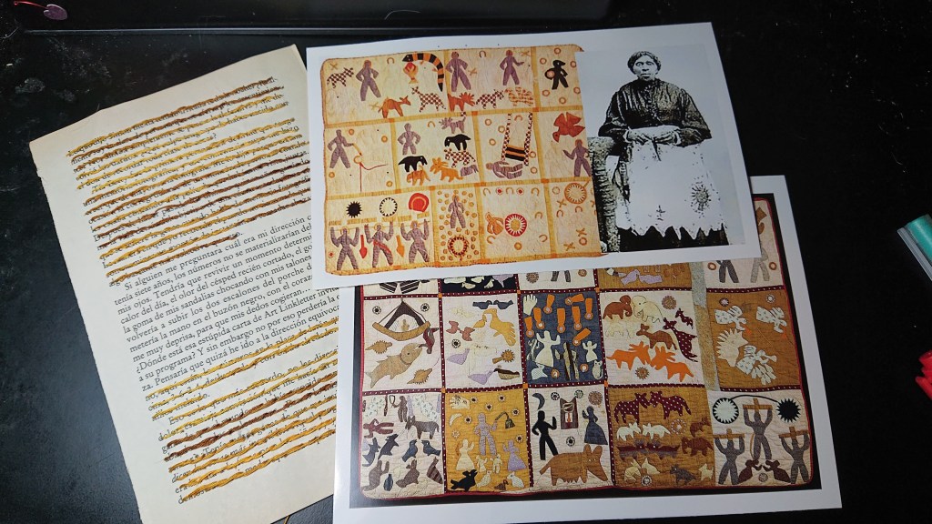 Yo elegí a Harriet Powers, una esclava nacida en Georgia, prácticamente analfabeta que una vez conseguida la libertad subsistía bordando las tradicionales colchas sureñas de patchwork. Solo se han conservado dos de ellas, que son admirados porque en sus colchas aunque recreen motivos bíblicos, el uso de las formas y el color están repletas de referencias al arte de una Africa occidental que nunca conoció.