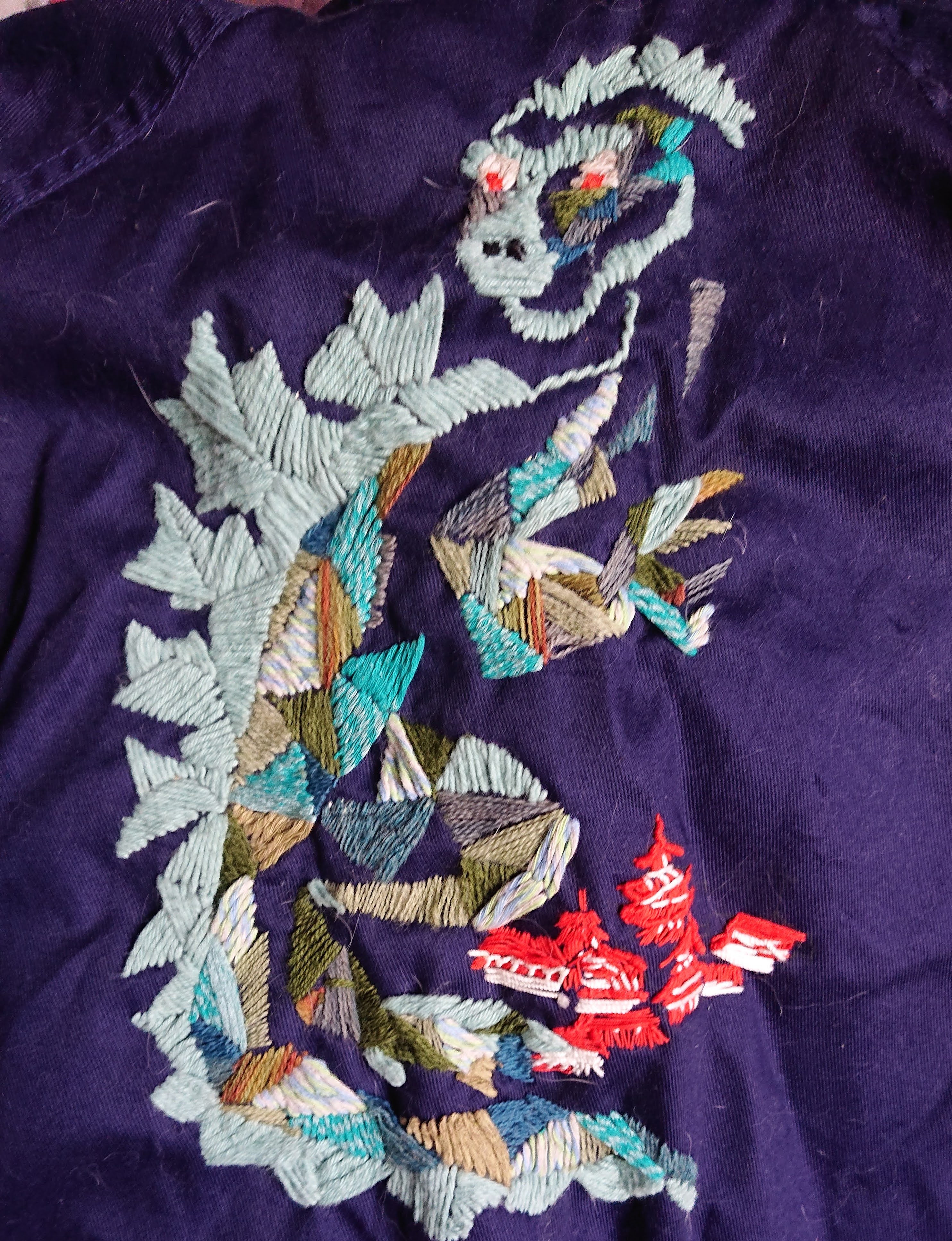 - Y casi lo más importante, para mi, es una película que habla de bordado tradicional japonés llevado a un contexto urbano. Desde nuestros ojos occidentales, resulta curioso que una tribu urbana «macarra» quiera lucir gabardinas perfectamente decoradas con bordados, porque aquí los tatuajes son para malotes de verdad ( y una cosa es ser una Yankee y otra ya de la yakuza, aunque de la yakuza también se ría la novela).