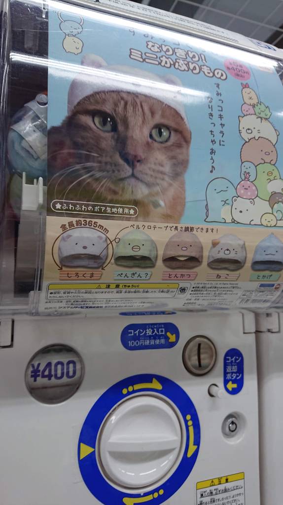 Reconozco que cuando uno cree que lo ha visto todo, cae rendido ante la realidad del éxito de las maquinas con gorros para gatos, que podías conseguir en cualquier lugar… Esta claro que Japón adora a los gatos