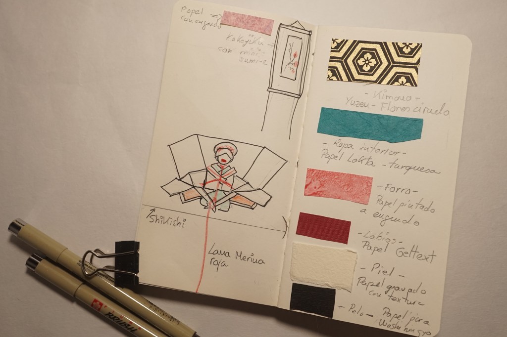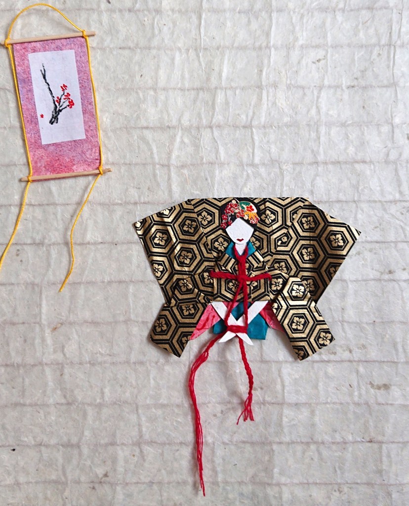 Me las imagino en una estancia intima , con tatamis y una decoración japonesa exquisita. por eso les pinto un pequeño sumi-e en un kakaeyiku para que las acompañe. Si a la primera que doble le pinté un bambu, esta vez un mini ciruelo. Y os diré una cosa. No hay dos sin tres. Quizás debería empezar a pintar unas mini orquídeas para la siguiente shibari.