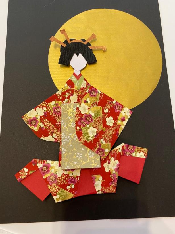Y no solo hemos hecho muñecas también nos hemos atrevido con el origami a distancia con un nuevo modelo de guardahilos chino. Y han quedado cosas tan bonitas como esta