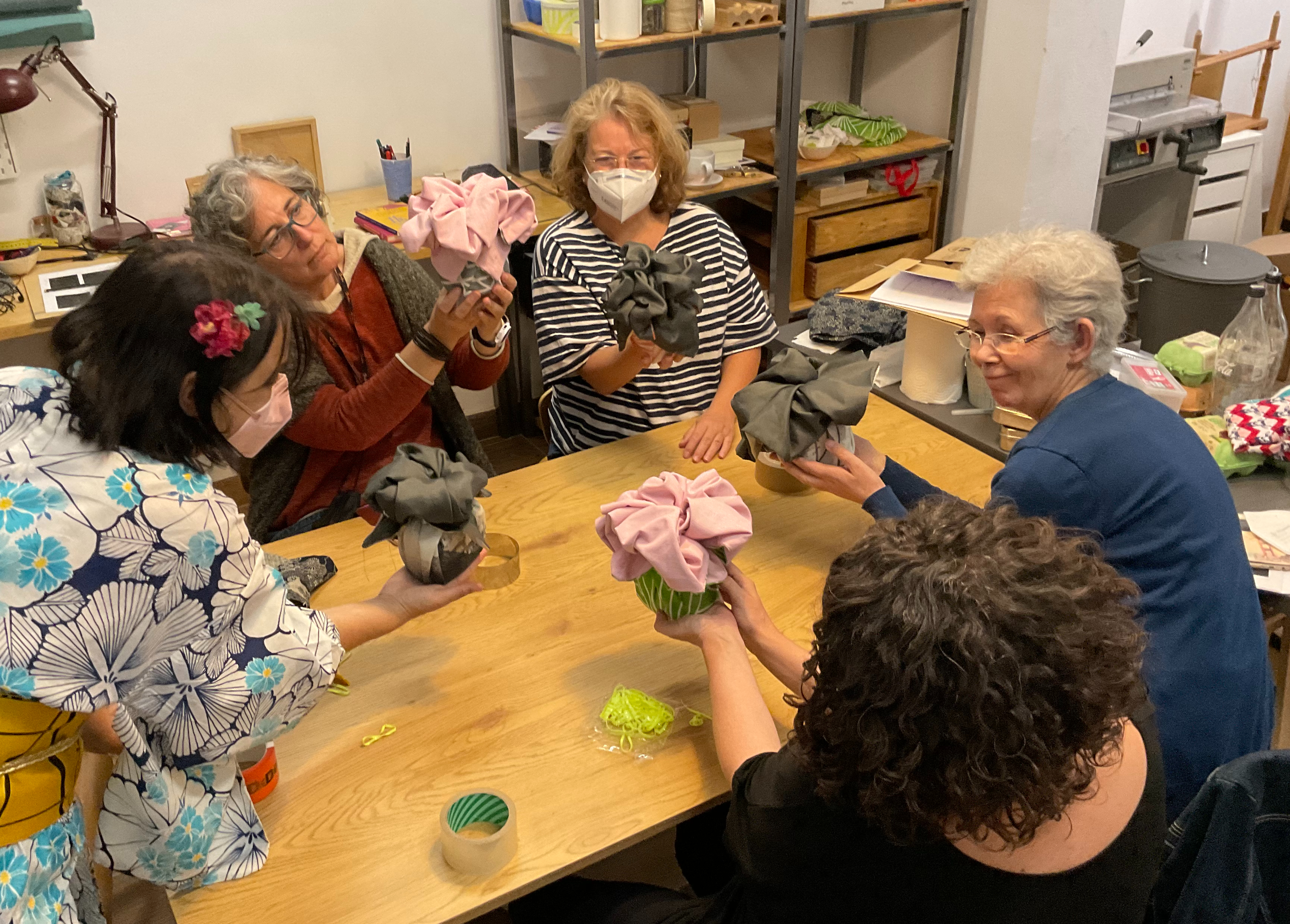Si quieres aprender De vez en cuando repito el curso de Furoshiki, aquí tienes la información de los próximos cursos, para que estes al tanto de lo que se cuece proximamente… pero siempre puedes juntar un grupito de cuatro en Madrid ( o donde quieras onlline) y se puede montar cualquiera de mis cursos.
