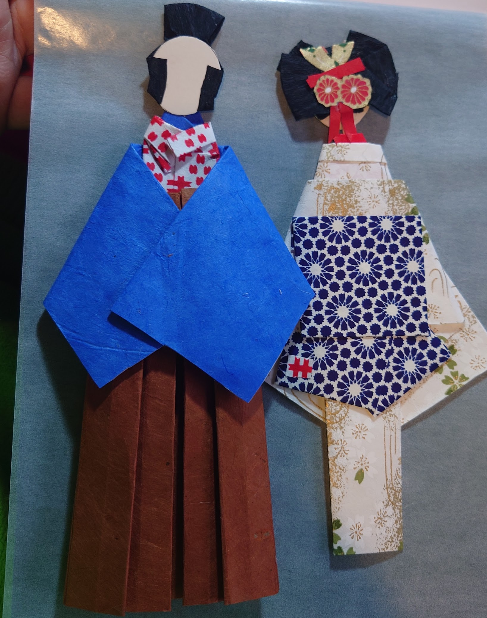 Las Washi ningyo ( las muñecas de papel japonés) en un principio realizaban las madres y las hermanas mayores el día de las niñas para las mas pequeñas de la casa. Tenían la misión de enseñar a las niñas a llevar el kimono, pero poco a poco evolucionaron a representar todo tipo de personajes. Guerreros, actores de Kabiki, representartes de la corte….