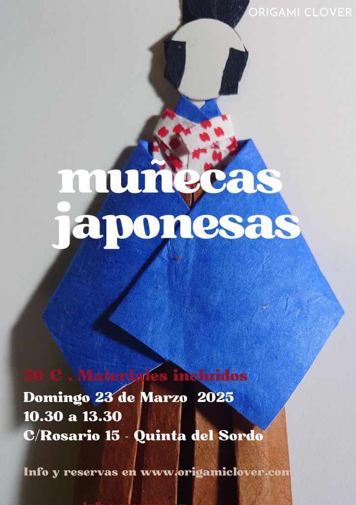 - Todos los materiales incluidos. Usaremos distintos papeles artesanales japoneses, para que puedas hacer tu muñeco con los que más te gusten.